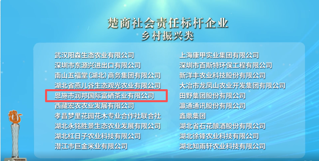 特大喜讯|润邦茶业荣耀入选“楚商社会责任标杆企业”!